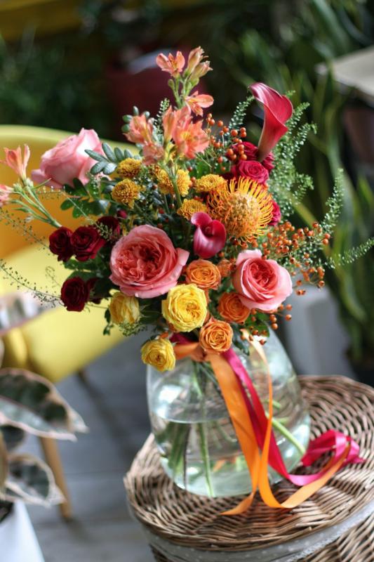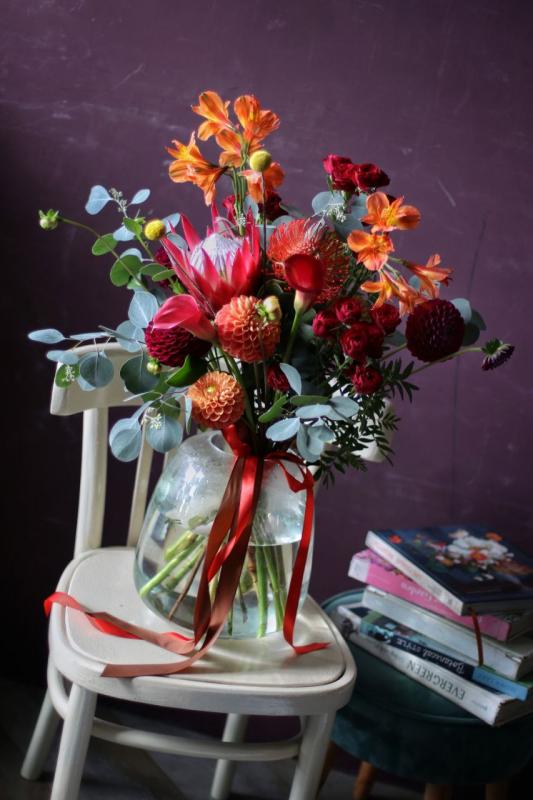 Букет выполнен в авторской технике ведущим флористом салона. Создается под заказ, исходя из индивидуальных предпочтений (по фактуре, цветовой гамме) и сезонности. В основе экзотические цветы. |