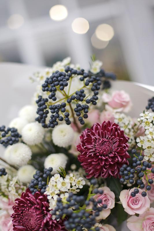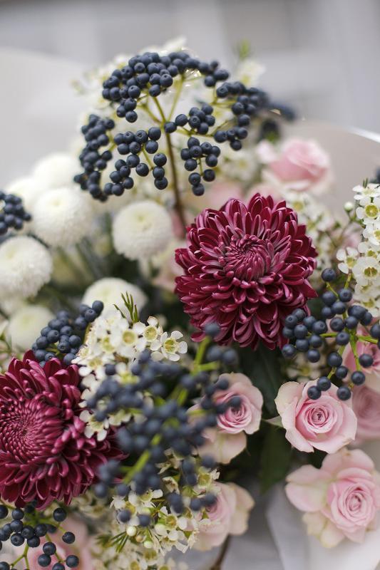 Состав букета | Хризантема, кустовая роза, вибурнум, хамелациум |
