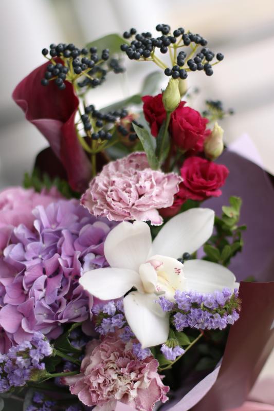 Гортензия, статица, эустома, калла, цимбидиум, гвоздика |