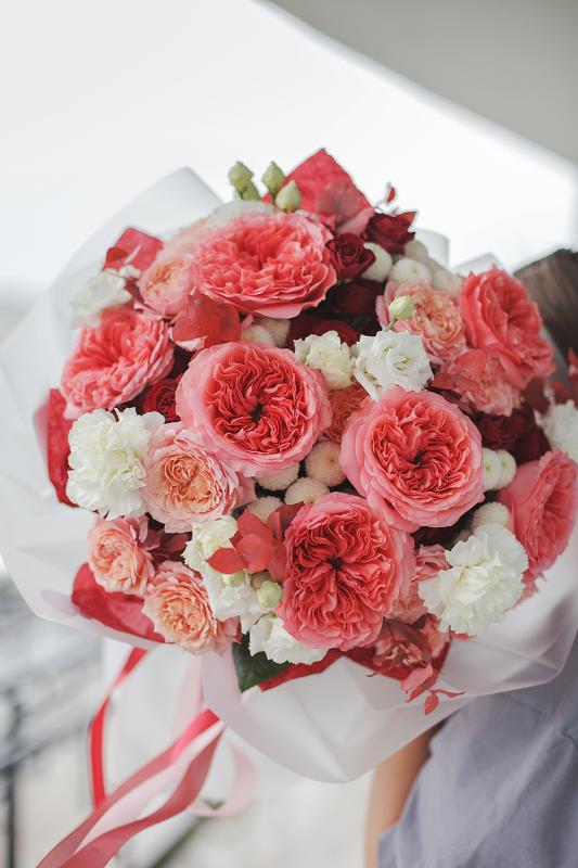 | Оформление | Корейская пленка либо дизайнерская бумага, тишью. Оформление может быть любым: свои предпочтения можно указать в примечаниях, либо рассказать специалисту салона по телефону. |