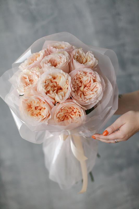 | Состав букета | Одноголовая пионовидная роза - 9 штук |