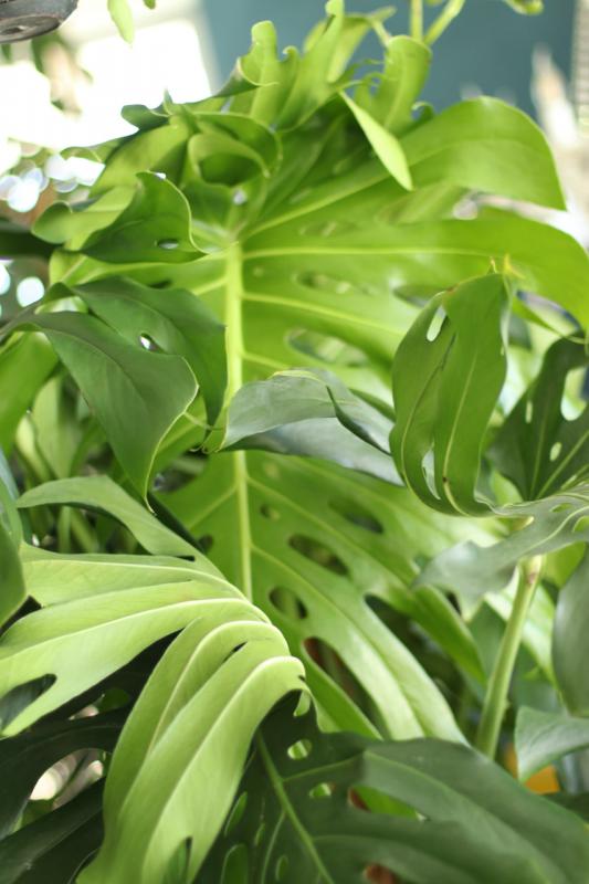 Монстера требует минимум ухода – полив требуется лишь тогда, когда грунт хорошо просохнет вглубь горшка. По режиму полива монстера ближе к суккулентам, чем к остальным комнатным, однако редкие поливы должны быть достаточно обильны. Опрыскивания придутся растению по душе, при повышенной влажности воздуха листья будут выглядеть более декоративно и расти крупнее, однако и без увлажнения монстера будет хорошо себя чувствовать – у нее не сохнут кончики листьев от недостатка влажности воздуха. Температурный режим для монстеры вполне подходит комнатный, возможно снижение температуры зимой, но важно не допускать охлаждения ниже 10 градусов. Пропорционально уменьшению температуры, сокращается и полив. |