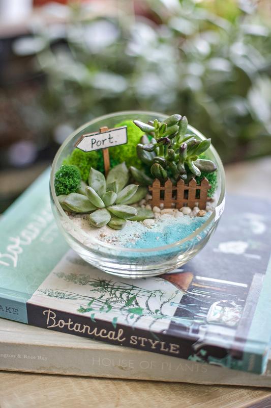| Состав композиции | Суккуленты, грунт/ керамзит, декоративный песок, миниатюрные фигурки |