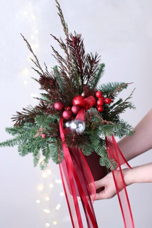 | Описание | Композиция из натуральной пихты nobilis и сосны Декорирована шариками, новогодними фигурками. |