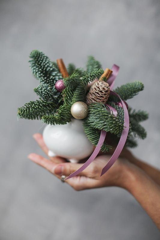 | Состав композиции | Керамическое кашпо, Нобилис, игрушки |